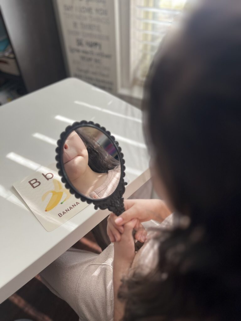 Use the Mirror Strategy – Invite students to use a mirror. “Ahora tu turno. Toma ese espejo y practica el sonido conmigo”